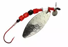 Het Forellen sleep systeem is een kant en klare onderlijn voor het slepend vissen met de bombarde. De smalle blinker beweegt zeer mooi onder water bij langzaam binnen halen.