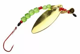 Het Forellen sleep systeem is een kant en klare onderlijn voor het slepend vissen met de bombarde. De smalle blinker beweegt zeer mooi onder water bij langzaam binnen halen.