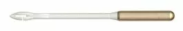 De hakensteker is wit van kleur en is aan de onderzijde voorzien van een messing kop.